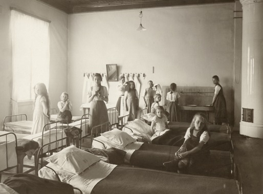 Girls’ dormitory at the Porvoo school for the deaf around the 1900s (Archive of the Finnish Deaf History Society)