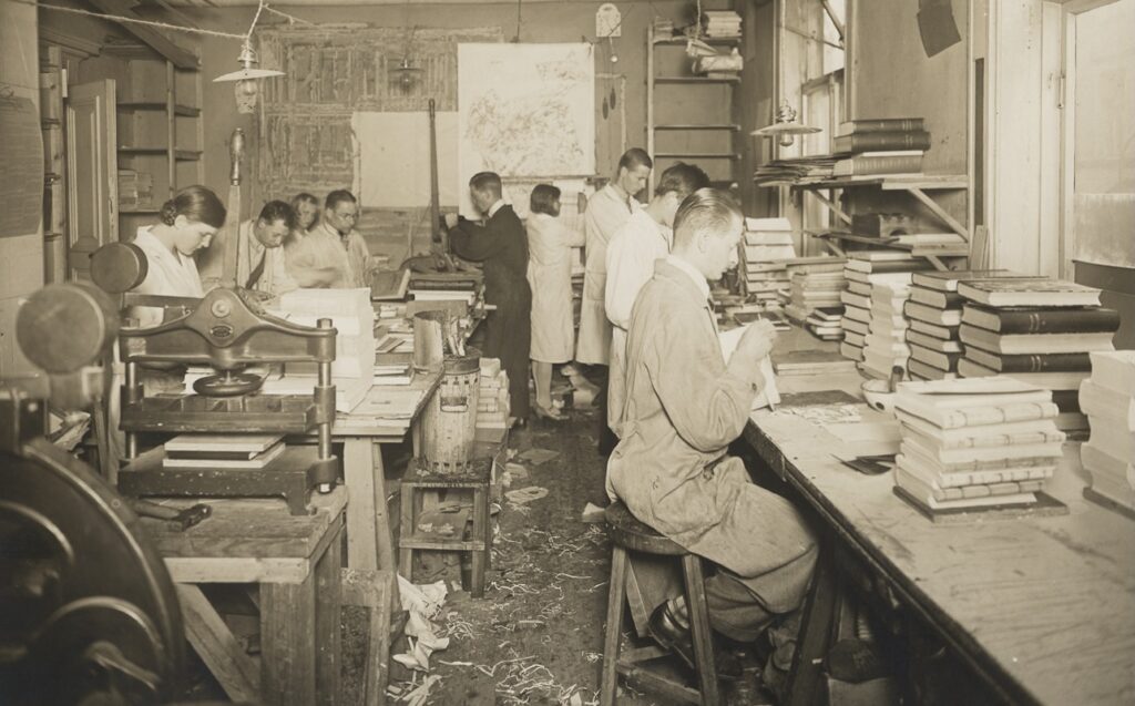 Oskar Wetzelliä’s printing house in the 1920s. Vocational training was provided in the house. (Source: Finnish Museum of the Deaf)